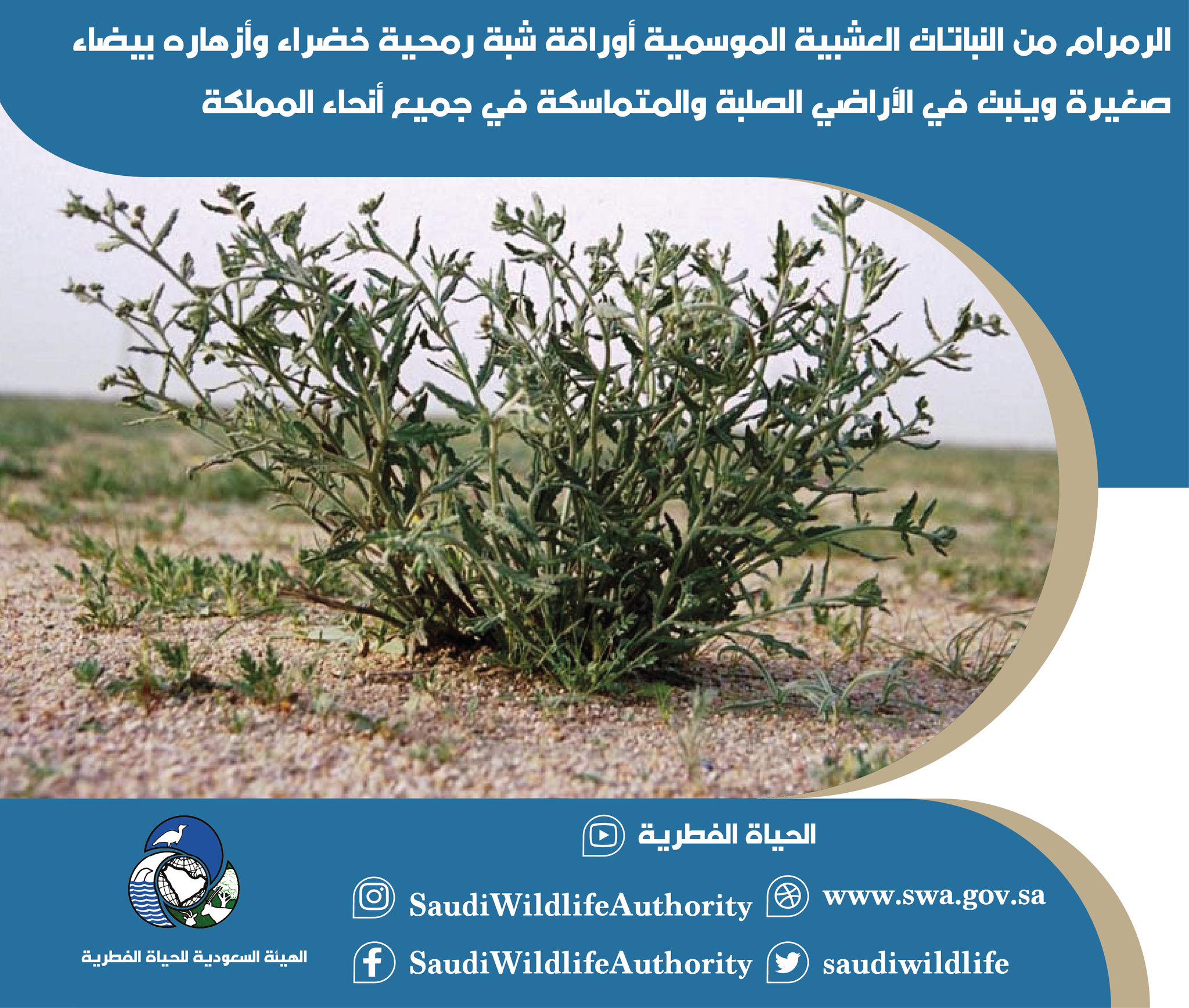 الهيئة السعودية للحياة الفطرية V Twitter الرمرام من النباتات العشبية الموسمية ترتفع بمقدار 60 سم عن الأرض وهي كثيرة الفروع والأوراق شبه رمحية خضراء تكون بطول 3 سم وأزهارها بيضاء يبلغ قطرها