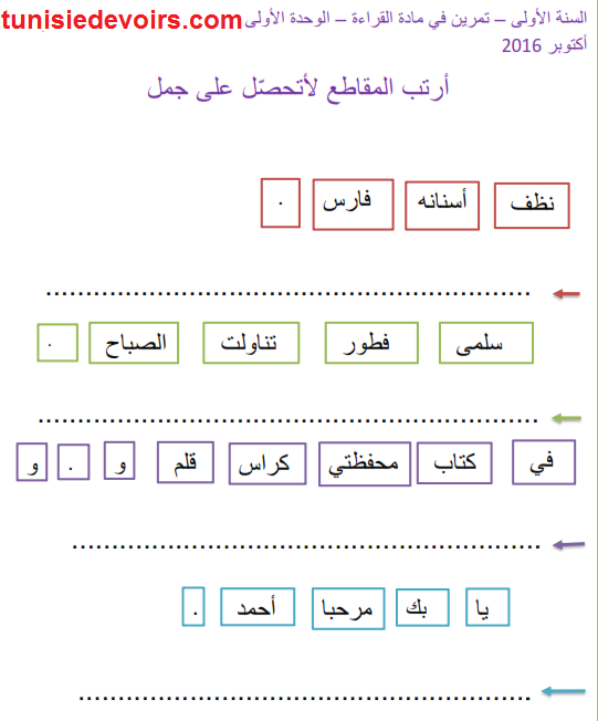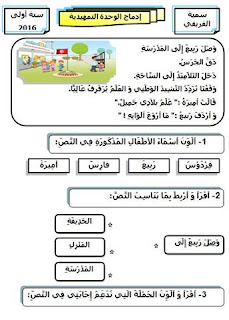 الوحدة التمهيدية تمارين سنة اولى ابتدائي تونس