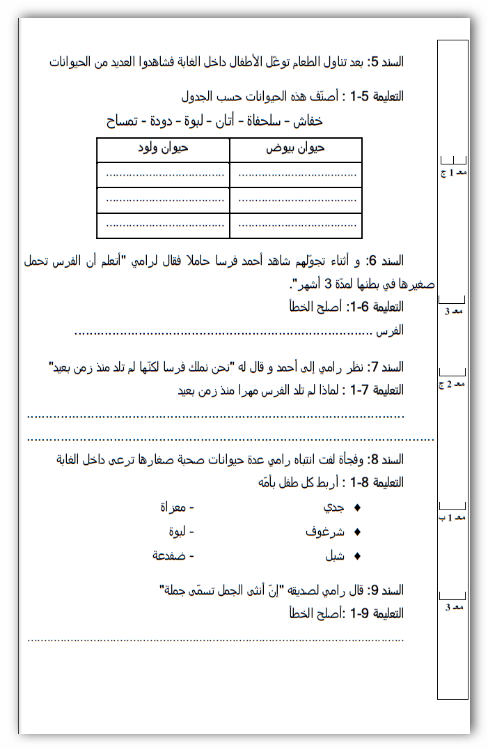 سنة ثالثة ابتدائي امتحانات السنة الثالثة ابتدائي تونس الثلاثي الاول
