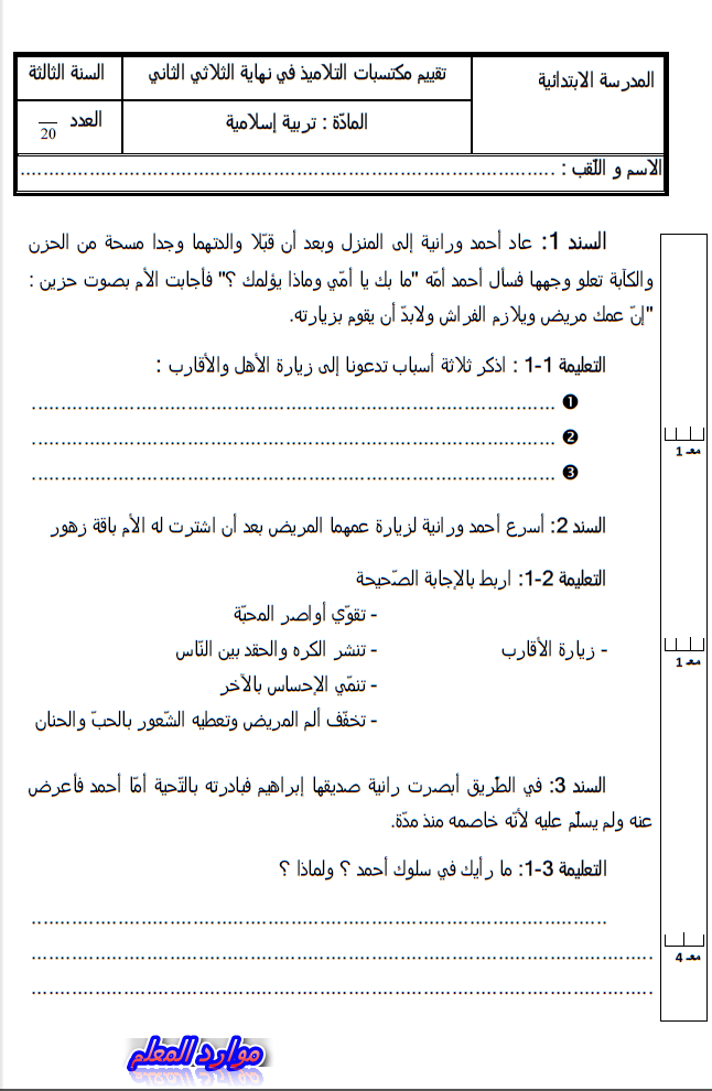 إمتحانات السداسي الأول سنة ثالثة التربية الإسلامية إيقاظ علمي القراءة Learning Arabic Arabic Lessons Teaching