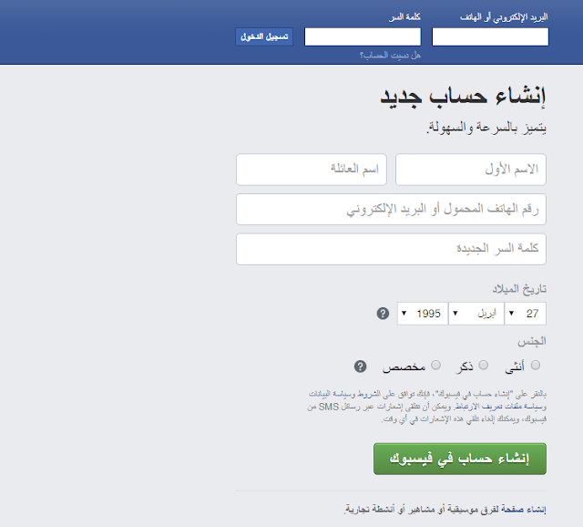 طريقة انشاء حساب فيس بوك Facebook بالعربي المرسال