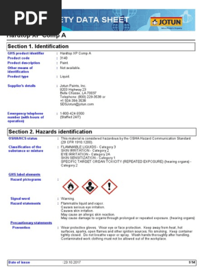 Sds Hardtop Xp Comp B Dangerous Goods Safety