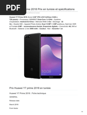 Huawei Y7 Prime 2018 Prix En Tunisie Et Specifications
