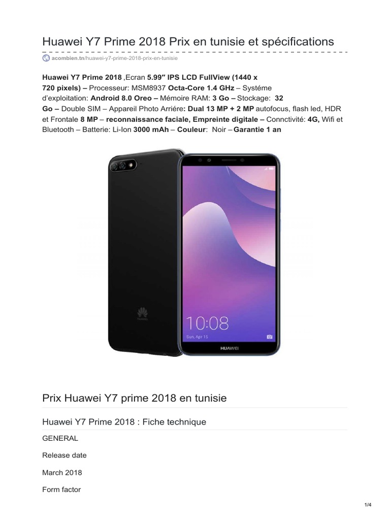 Huawei Y7 Prime 2018 Huawei Tunisie Tunisiatech