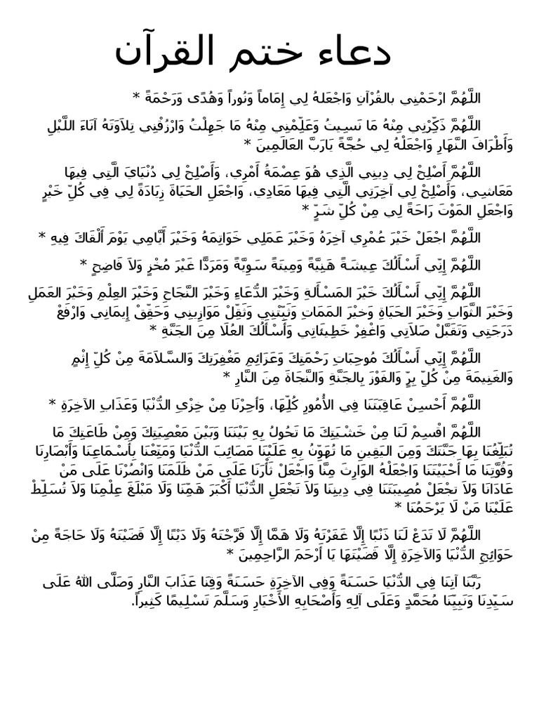 دعاء ختم القرآن مكتوب قصير القلعة