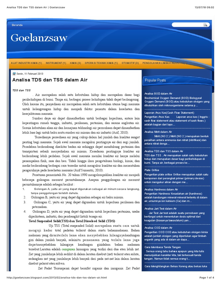 Goelanzsaw Analisa Tds Dan Tss Dalam Air