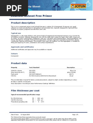 Jotafloor Sf Primer Technical Data Sheet Epoxy Paint