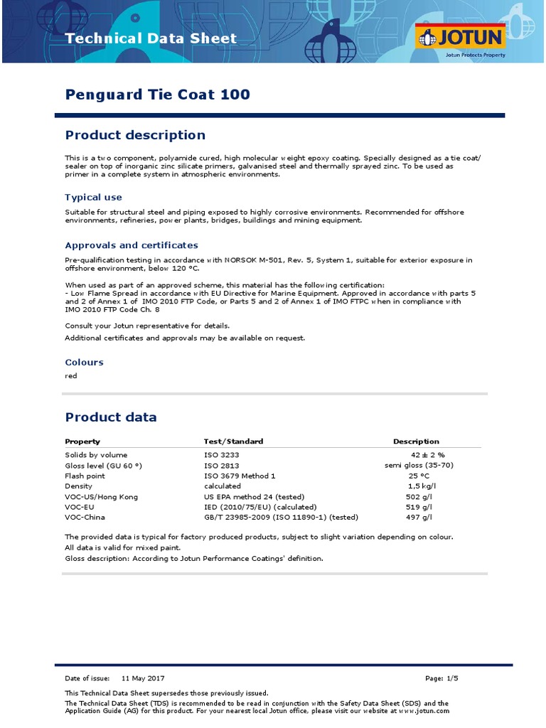 Tds Penguard Tie Coat 100 Gb English Protective Pdf Epoxy Galvanization