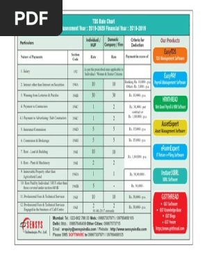 Latest Tax Deducted At Source Tds Rate Chart For Ay 2020 21 In Pdf Fy 2019 20