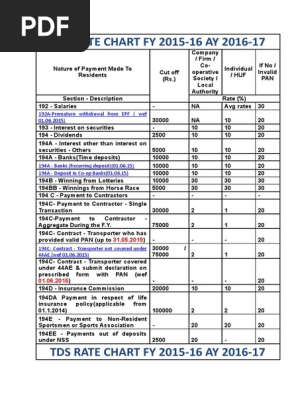 Pdf Tds Tcs Rate Chart For Ay 2020 21 Pdf Download Instapdf