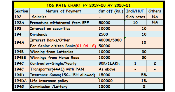 Latest Tds Rates Fy 2019 20 Revised Tds Rate Chart Ay 2020 21