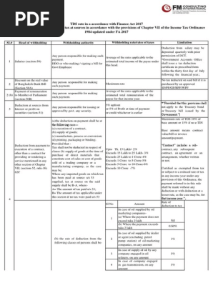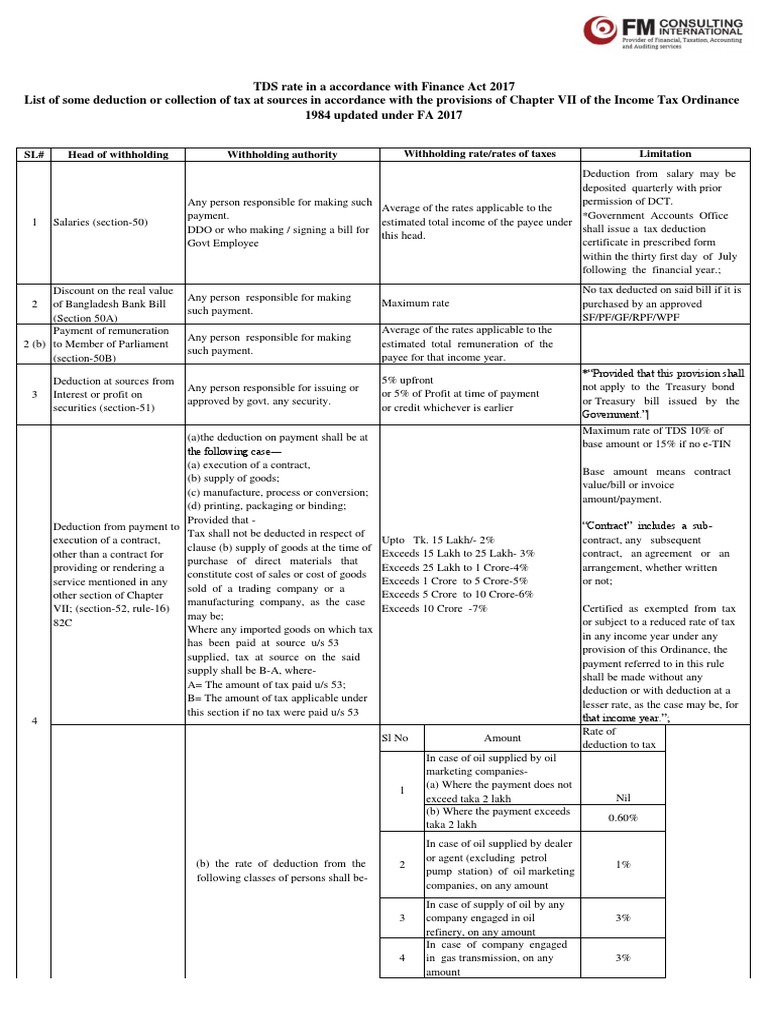 Tds Vds Rate Bangladesh 2017 18 Updated Tds Rate In A Accordance With Finance Act 2017 List Of Some Deduction Or Collection Of Tax At Sources In Course Hero